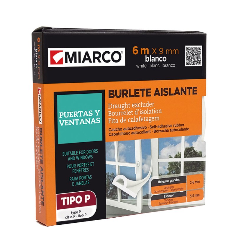 Autoadhesivo. Perfil tipo P. Para holguras de 2 a 5 mm.